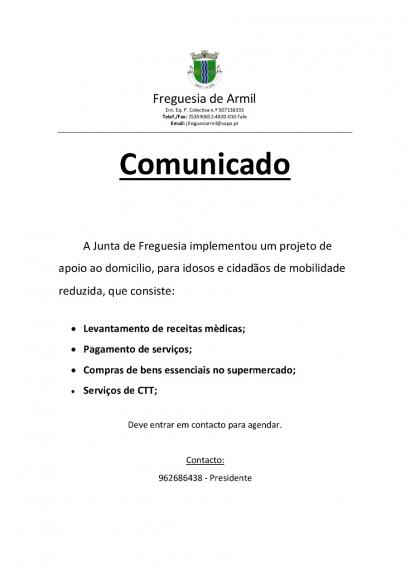 A Junta de Freguesia irá começar a distribuir a partir do próximo fim de semana, um Kit com 2 máscaras e 1 gel desinfetante por cada habitação!Foi tomada esta medida como forma de tentar ajudar no combate ao Covid-19.Esperamos que seja útil a todos os Armilenses!Tenham cuidado e tomem as devidas medidas de segurança, PROTEJAM-SE!